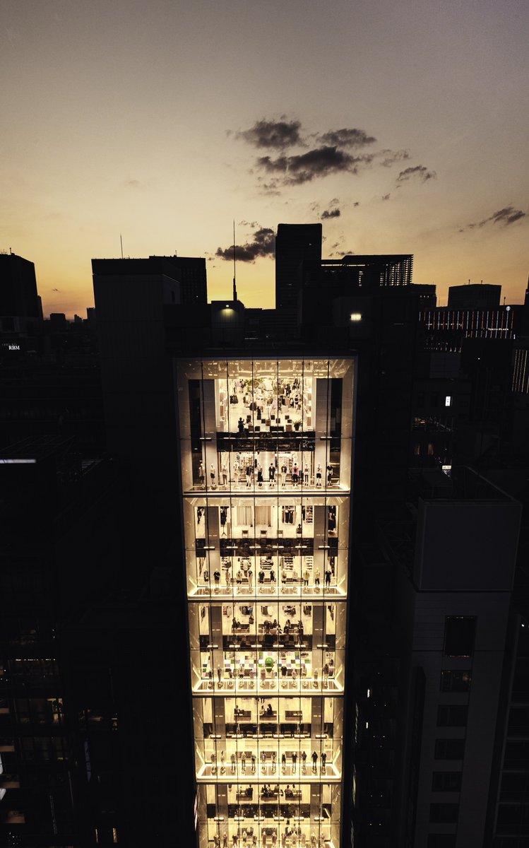 銀座で見れる世界最大ユニクロと夕焼け