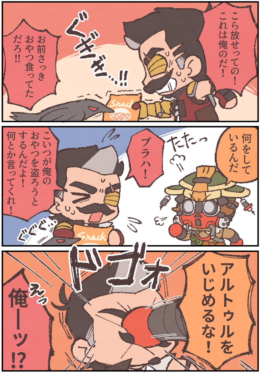 足の指をぶつけてしまったブラハさんとブラハ大好きヒューズの四コマ 多分ヒュブラ?