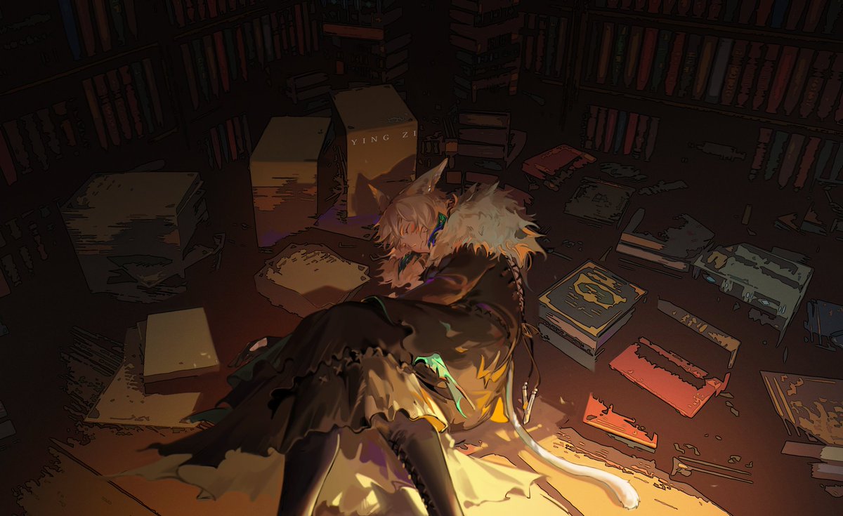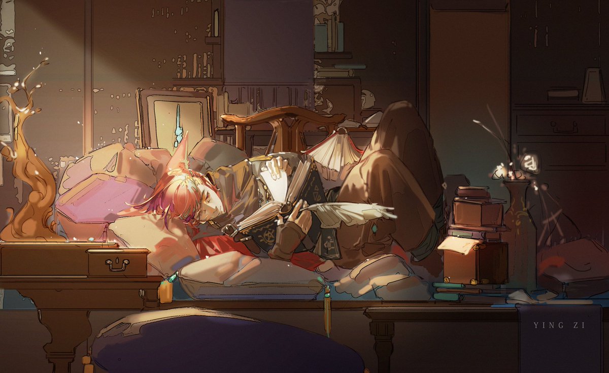 窝着看书的小红猫:D