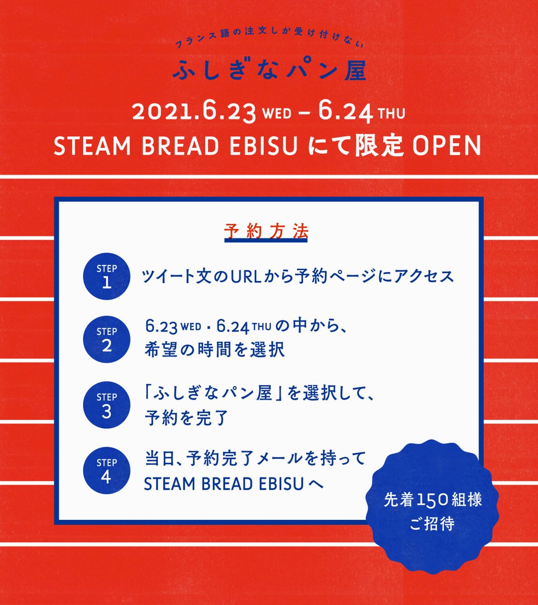 フランス語で注文できたら、今話題のお店STEAM BREAD EBISUが開発したフランスパンをプレゼント🥖フランス語が話せなくても、店頭で教えるから安心してね◎