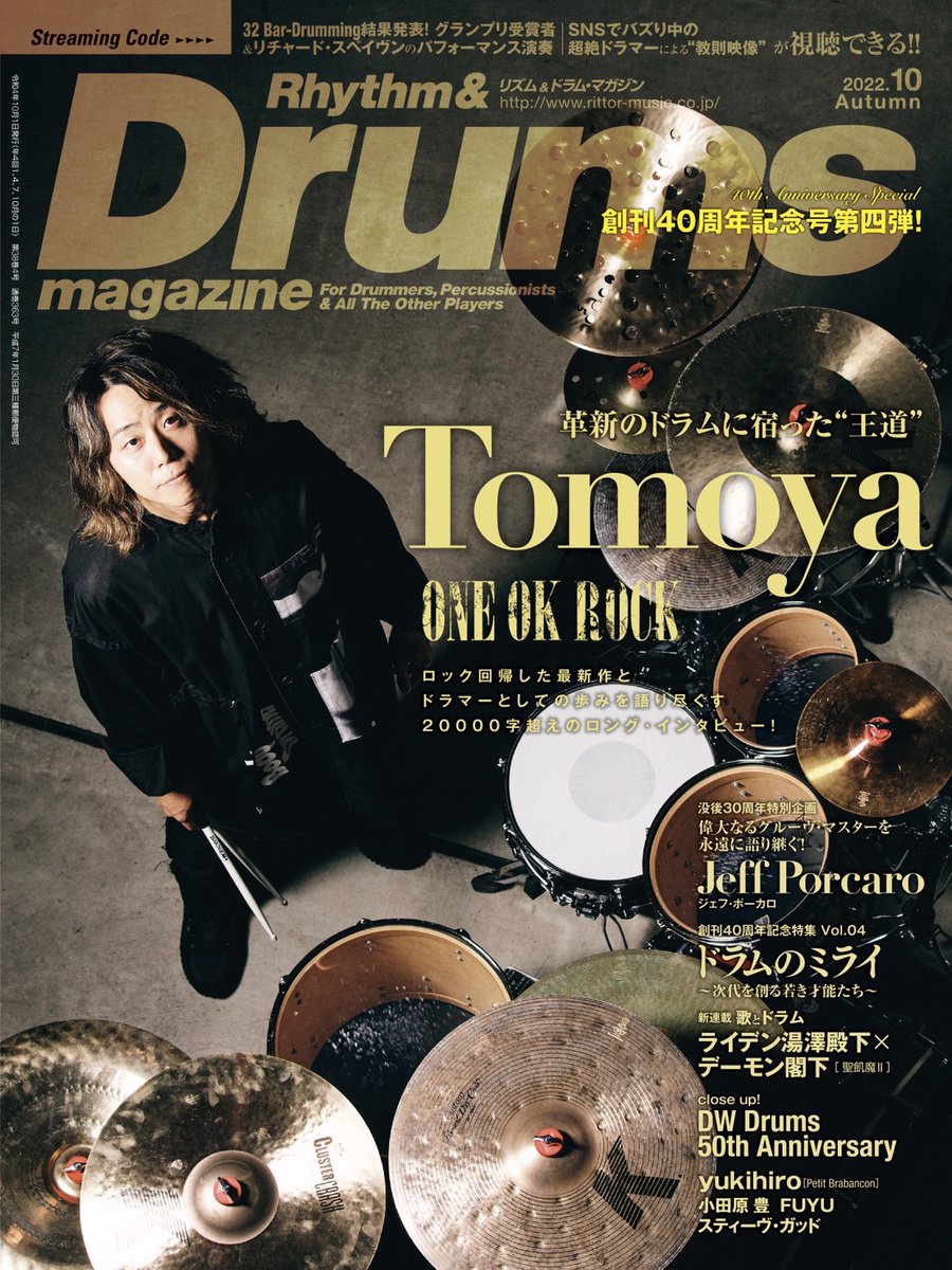 9/15発売のドラム・マガジンは、デビュー15周年を迎えたONE OK ROCKのTomoyaが登場!アルバム『Luxury Disease』から自身のルーツまで、22P&2万字超!さらにジェフ・ポーカロ没後30年特集、創刊40周年特集Final、春のコンテスト結果発表も!