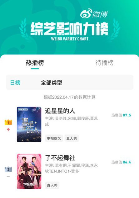#TEN #TENLEE’s #GreatDanceCrew has remained top 2 on Weibo’s Variety Chart (dated from April 16th to April 17th)