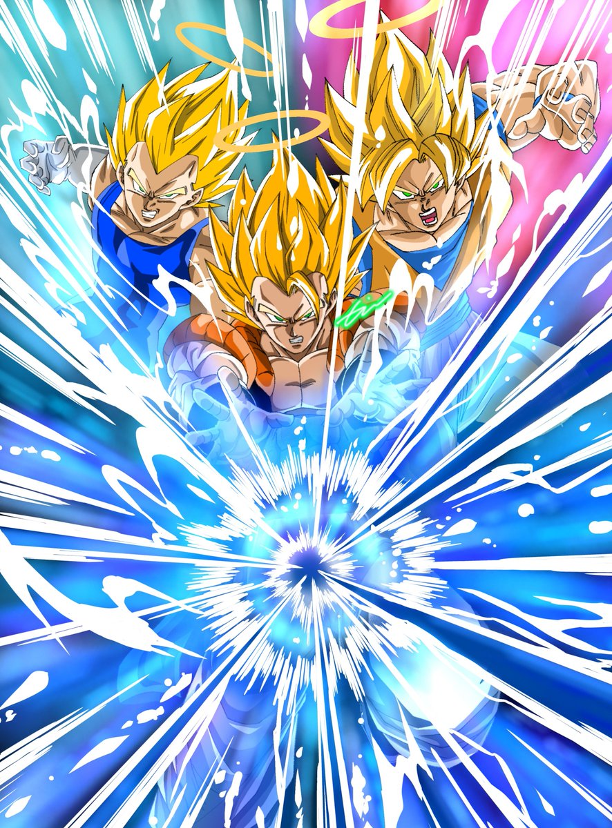 対ブロリー戦での異空間がゴジータのオーラで崩壊していくのをイメージしたイラストです😊 ゴジータの圧倒的な力を表現したかったので余裕の表情で見下ろしながらこちらに歩いてくるような構図にしてみました!