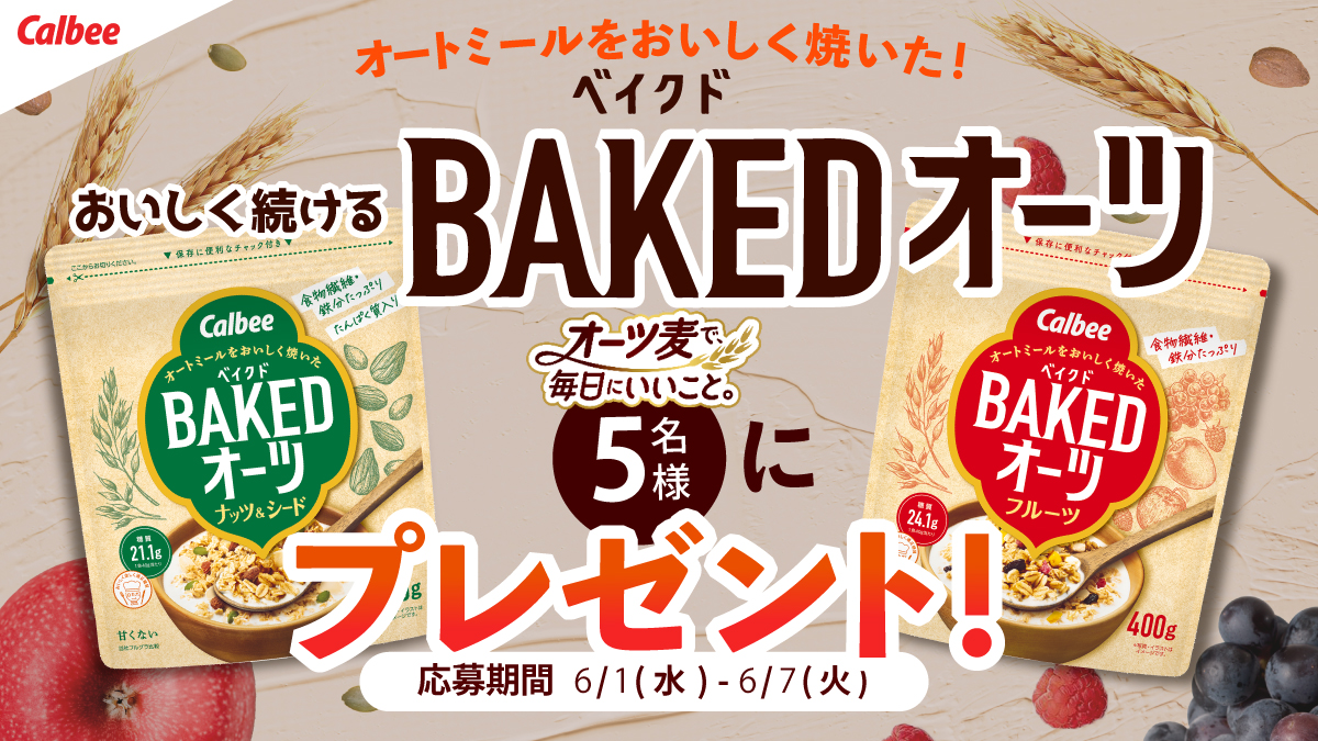 #キャンペーン 第39弾は、低カロリーで栄養満点のオーツ麦だけを使った『カルビー ベイクドオーツ 2種セット』を【5名様】に #プレゼント🎁