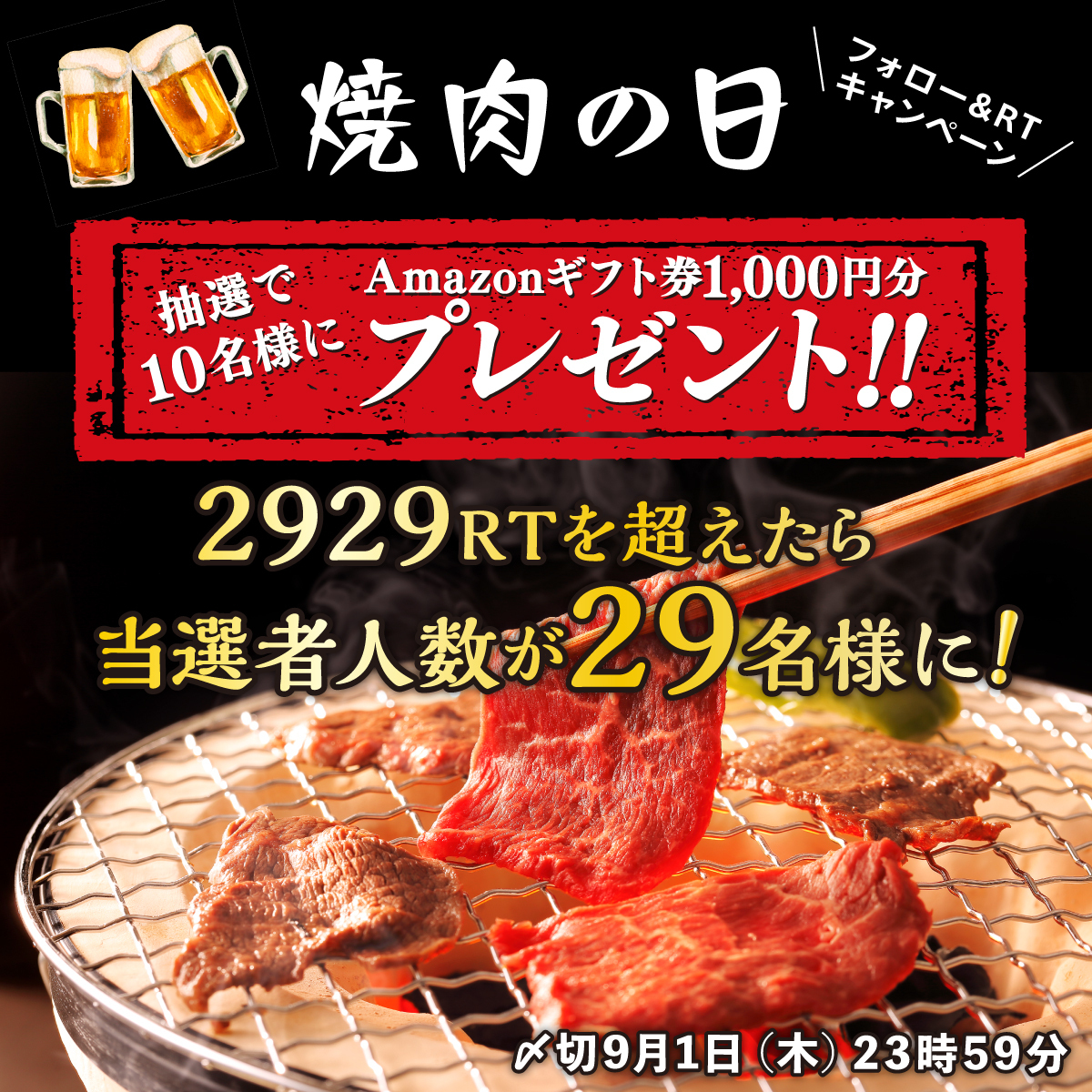 デリバリー&テイクアウトアプリの『#menu(#メニュー)さんが今日、8月29日の「#焼肉の日🥩」に合わせて、魅力的なプレゼントキャンペーンを開催中です🥳🎉