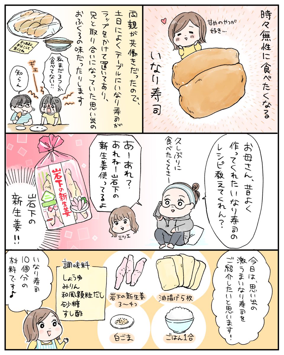 今回ご紹介するのは岩下の新生姜を使ったいなり寿司です!(おまけドリンクレシピも描きました🍹)