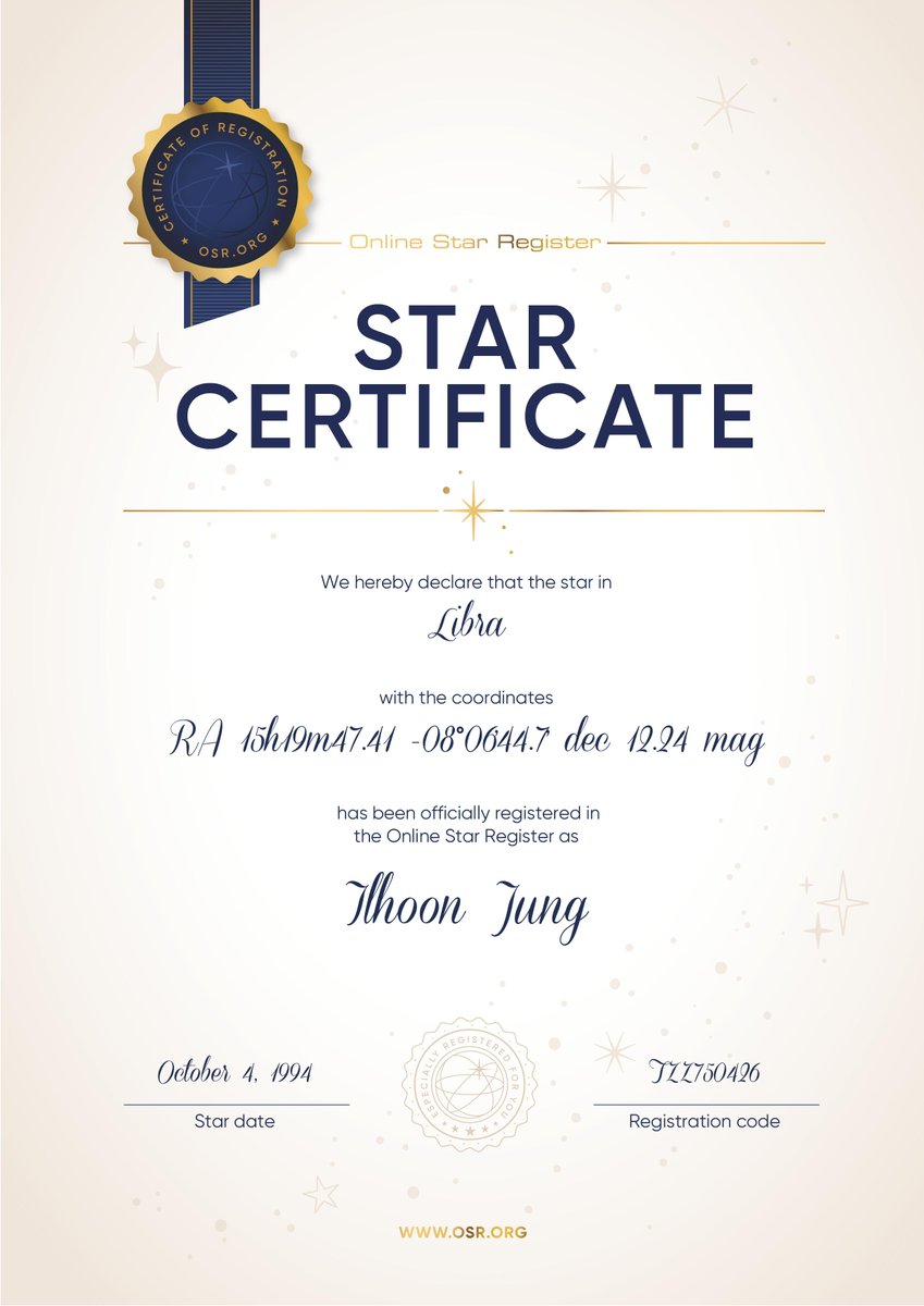🌌일훈이 이름으로 천칭자리에 별을 하나 땄습니다. 조금 이르지만 크리스마스 선물이에요.