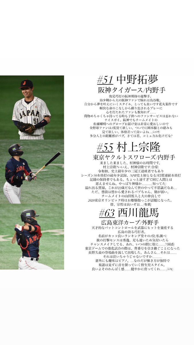 「一目で見てわかる!2020オリンピック侍ジャパン一覧」第2弾📝