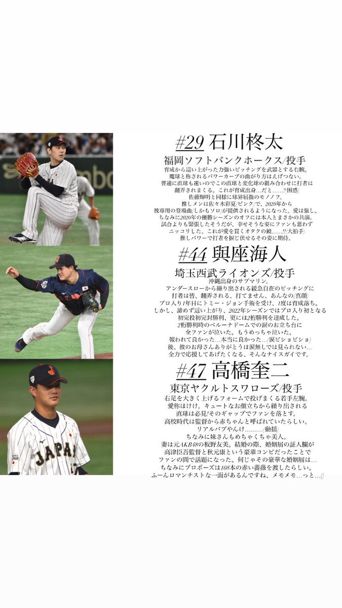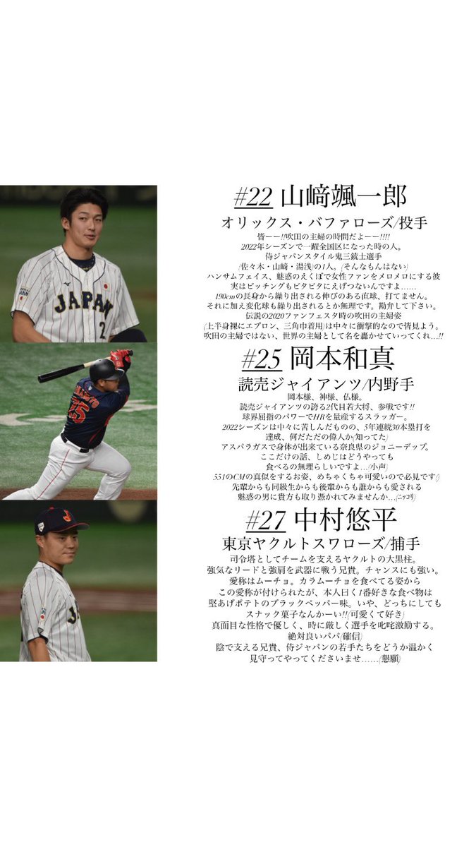 「一目で分かる!侍ジャパン強化試合2022選手一覧」第3弾📝