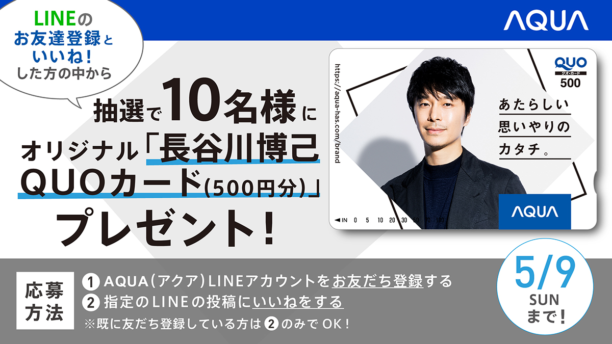 AQUAオリジナル【長谷川博己QUOカード(500円)】プレゼントキャンペーン✨5月9日(日)23時59分まで!