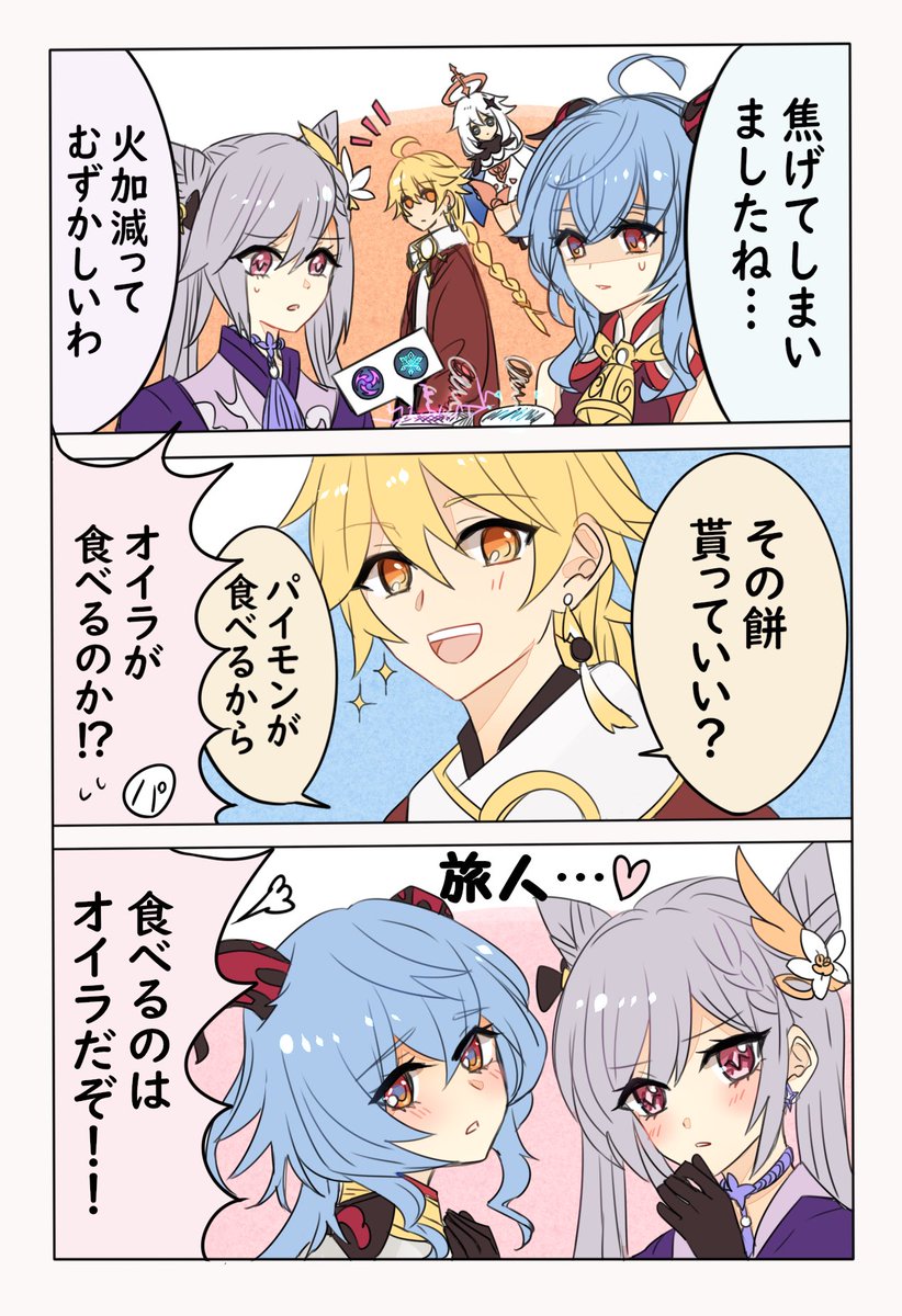 お餅を焼く刻晴ちゃんと甘雨ちゃん+α