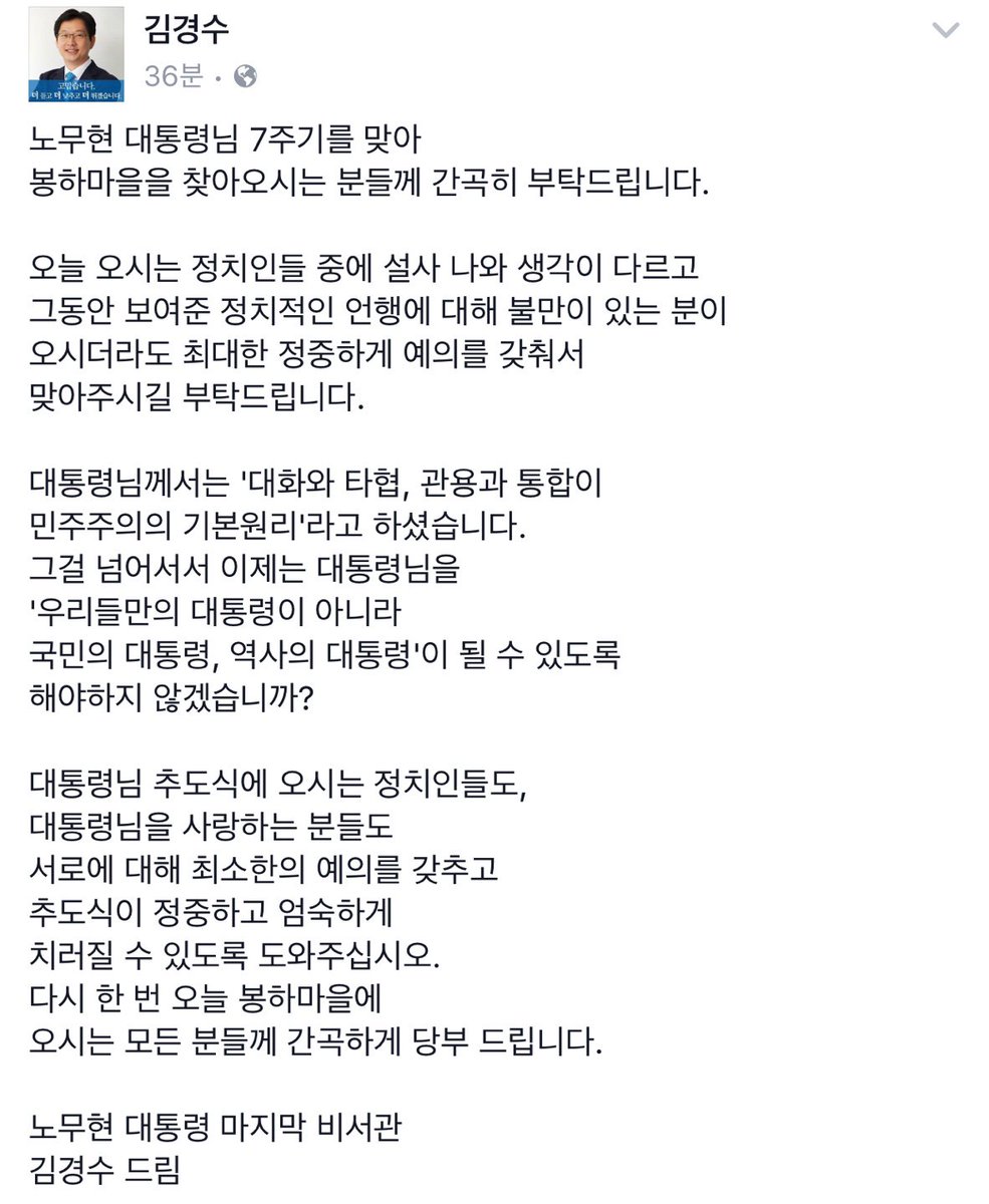<대통령님의 마지막 비서관 김경수가 드리는 글>