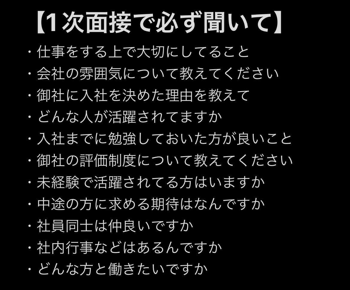 人材業界で働いてわかった。面接の際に軽々しく口に出してはいけないワードがある。「前職の不満」「なんでもやります」「御社が第一志望です」「御社しか受けていません」「給与とキャリアをUPしたい」何気なく答えてる面接の解答であなたの評価は激減してる。意識すれば合格率が上がる。詳しくわ⤵︎