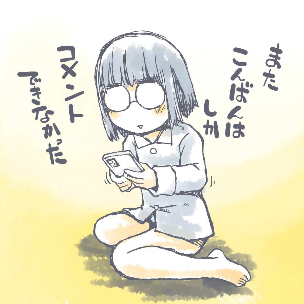 ゲームの生配信にコメントをいれようと 入力しているウチに話題がかわって文字を消す… を繰り返してるウチに配信が終わって 結局あいさつしか出来ないモブ眼鏡