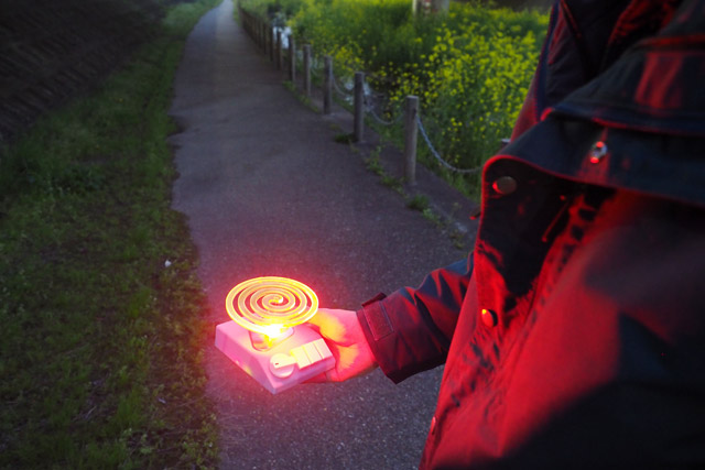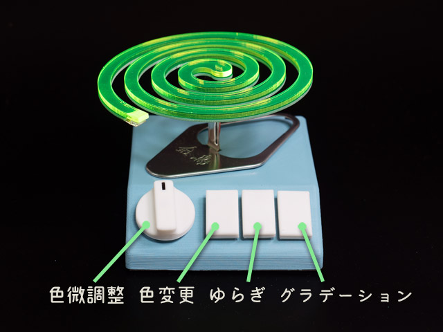 これは以前つくった、今の季節にぴったりな光る蚊取り線香(フィギュア)。特に意味はないけど風流です。