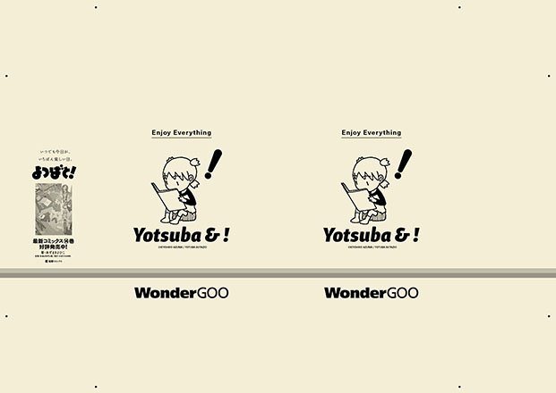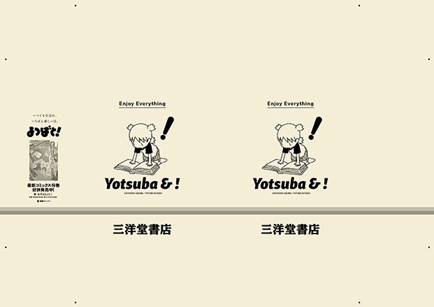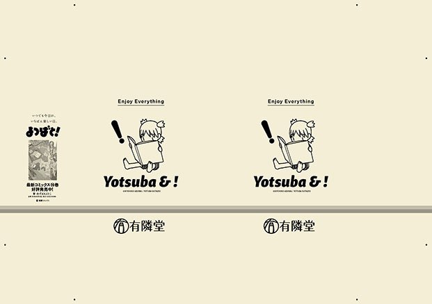 コミックスの発売にあわせて販促物もたくさん作りました。紹介その2。各書店で配布されるブックカバーです。「よつばと!」に使われたり使われなかったりするようです。
