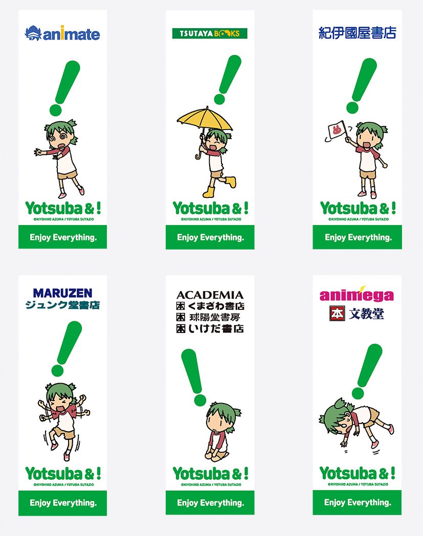 コミックスの発売にあわせて販促物もたくさん作りました。紹介その3。「角コミ」(KADOKAWAのコミックキャンペーン)配布用のステッカー。いくつかの作品の中に「よつばと!」も入ってます。ランダム配布。