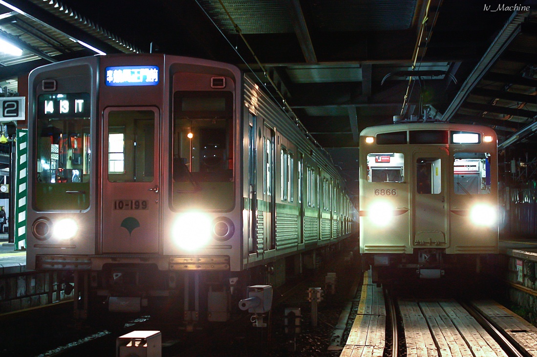 土休日の夕方に運行されている通称錆取回送と、競馬場線運用に就く10-000形。今となっては贅沢な並びになりました。