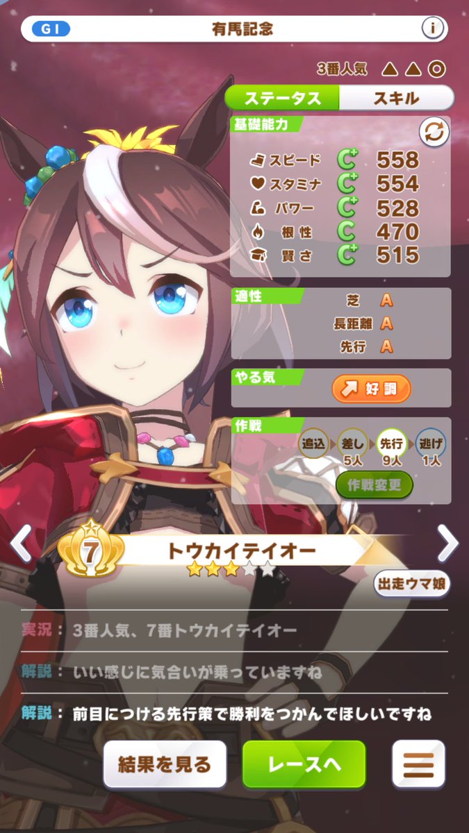 父父シンボリクリスエス宝塚記念(阪神)→負け(5着)