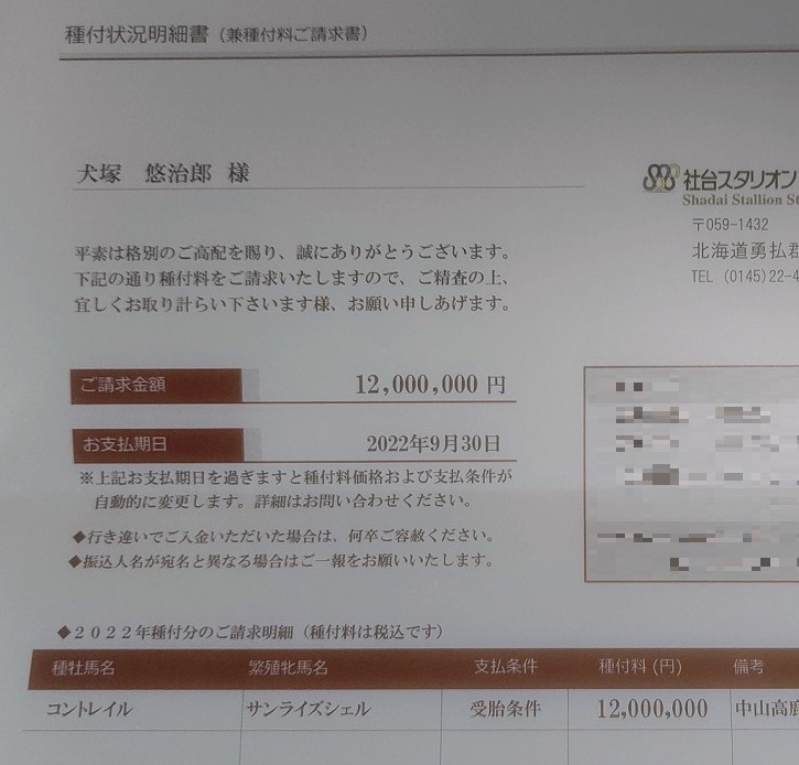 今年度の種付け頭数は177頭。種付料は500万円。