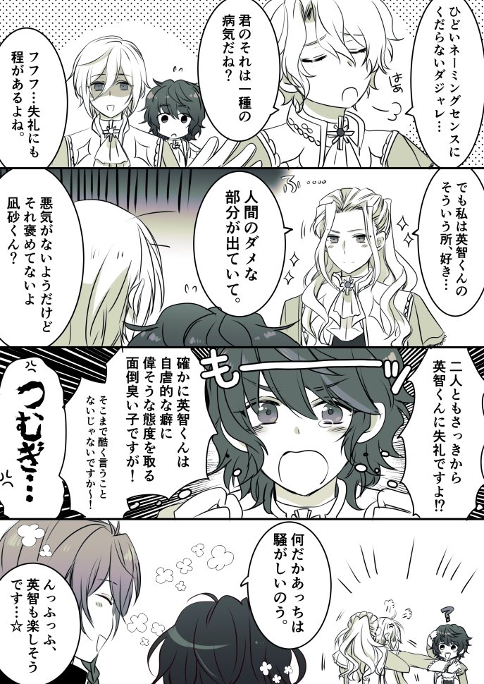カラオケの話はほんと面白くて、たとえば英智が「………‥ふん、ぼくは君とは生涯カラオケには行かないよ。でもいまのフィーネのメンバーとは既に行ったんだよ。どうだいくやしいかい?」って煽っても、つむぎは「???そうなんですかぁ〜、いけて良かったですねぇ英智くん〜♫」って返しそうだよね。