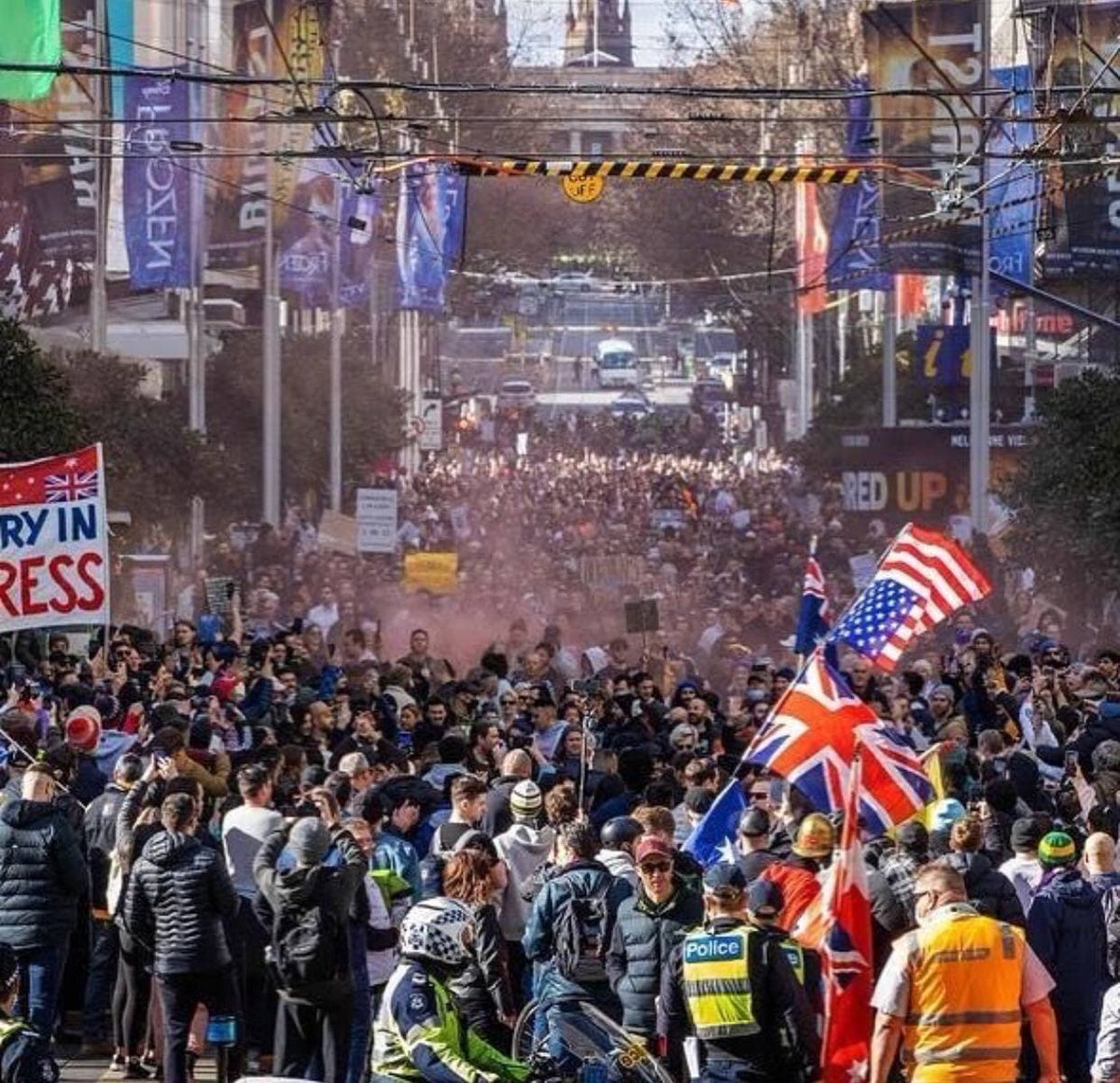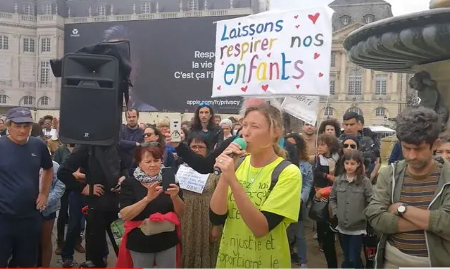 仏では注射が事実上の義務化。任期一年を切ったマクロンの焦りの表れ。7月14日はフランス革命記念日の休日。我慢の限界に来た国民が全国各地でデモ。メディアはこれを一切報道しない。画像はボルドー。プラカードは「子供に呼吸をさせよう」。