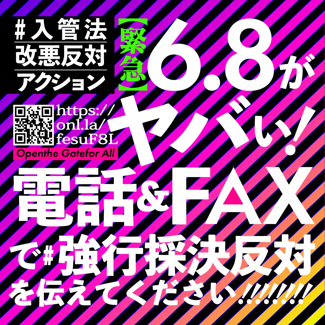 #入管法改悪反対アクション 『緊急:6/6がヤバい!FAXで#強行採決反対を伝えてください!』