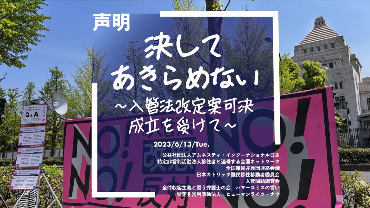 声明:私たちは、あきらめない ——— あらためて入管法改定案の廃案を求めます 「STOP! 長期収容」市民ネットワーク より7団体 Open the Gate for All openthegateforall.org/2023/05/blog-p…
