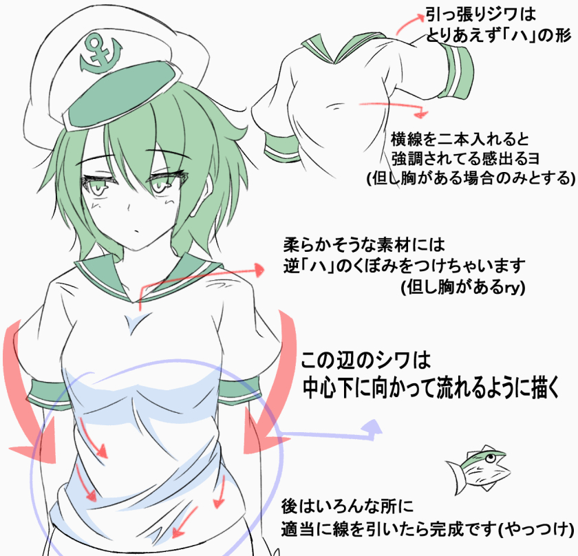 まぐとんさんはこんな感じで服のシワを描いてます。 見栄え良ければ全て良し。 モデル [水蜜さん]