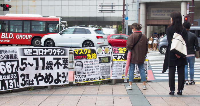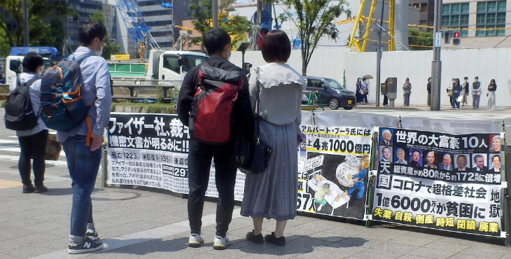 (1)昨日は春爛漫の陽気でカオス化した博多駅前で宣伝しました。「ファイザー社4兆1千億円売り上げ」「世界の大富裕資産倍増」のパネルは、指差しながら論議する人々など特に関心が高かったです。