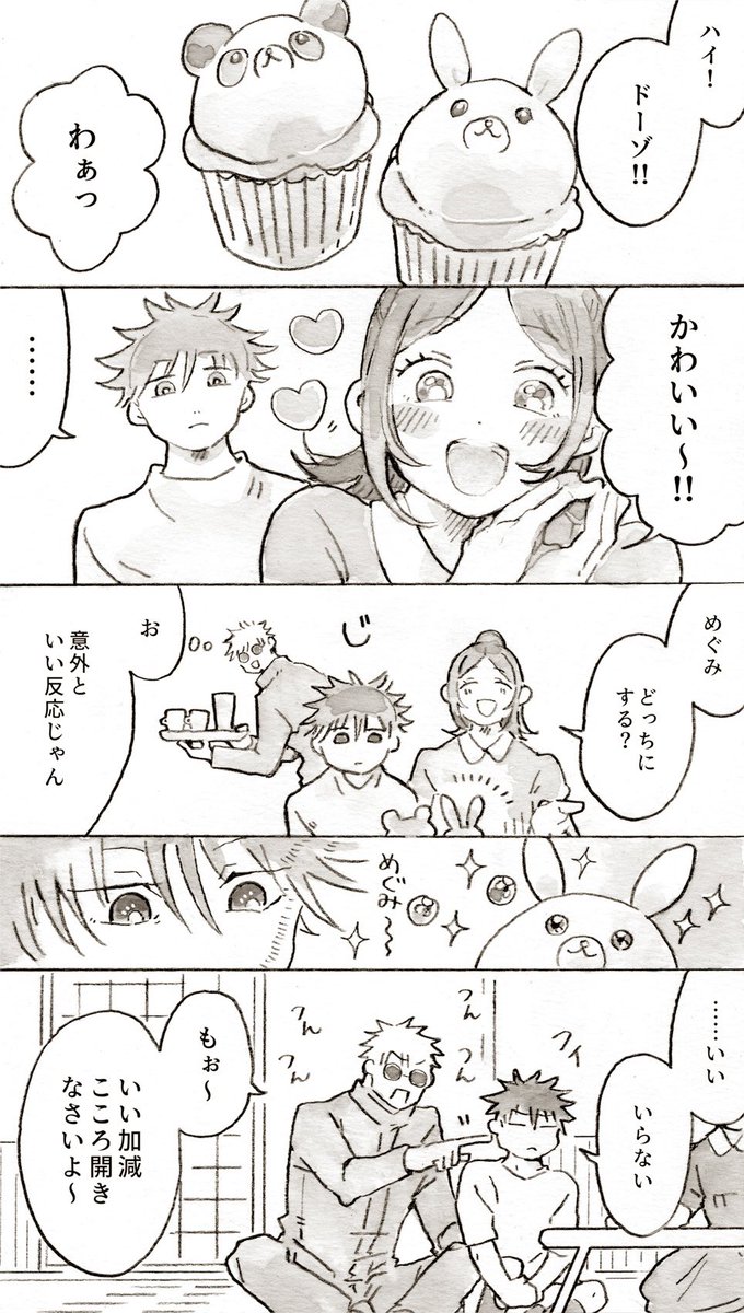 人気投票には興味がないが1位になったおかげで式神たちのグッズが出ることに気付いた恵「次回も投票お願いします」