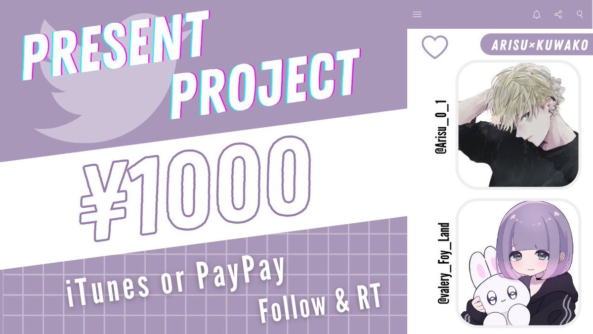 ▫️┊︎2人のフォロー+ RT♻️