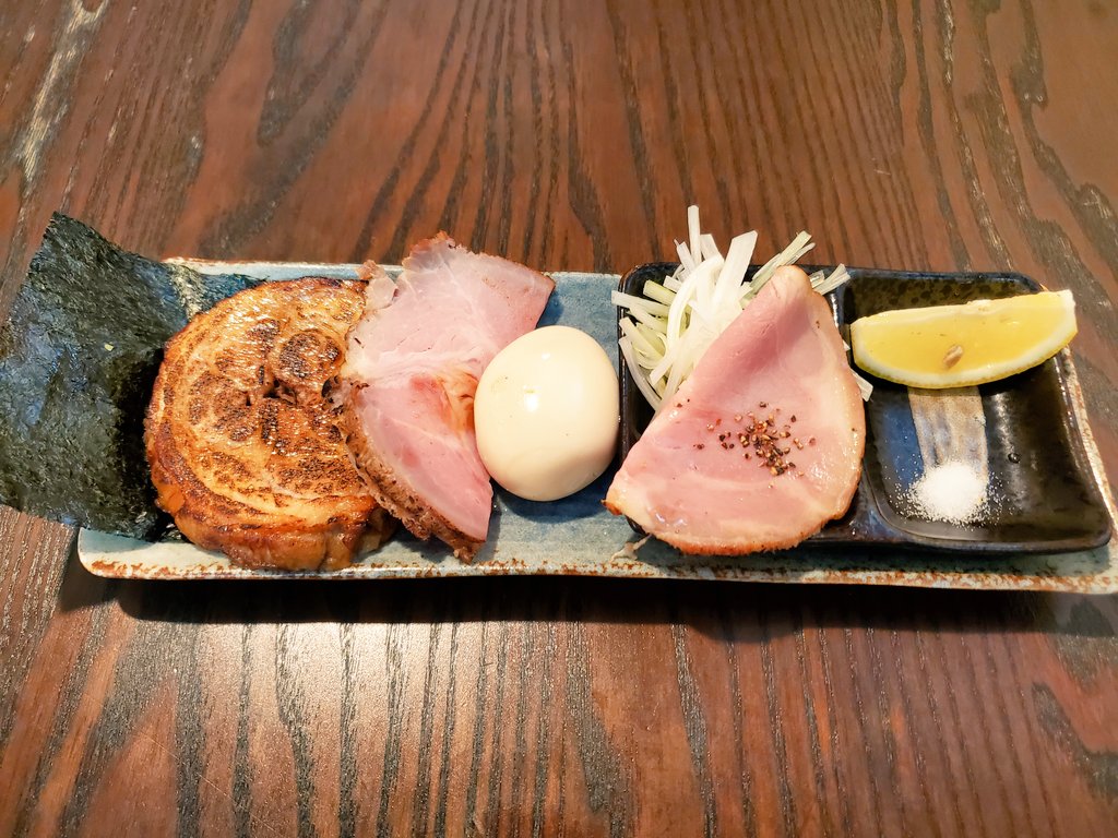 【中華蕎麦うゑず】 つけ麺大+桃源全種+ワインたまご味玉+南部竹の子メンマ 半年ぶり💕 東京から4時間🚘️ 妻の誕生日と年末はうゑず✋️ 麺もつけ汁も格の違い 美味すぎるわ✨️😆✨️ 今回はすだちがついており 桃源🐖や麺にかけて味変😆 さっぱり感最高っすね🤣 ご馳走様でした💕