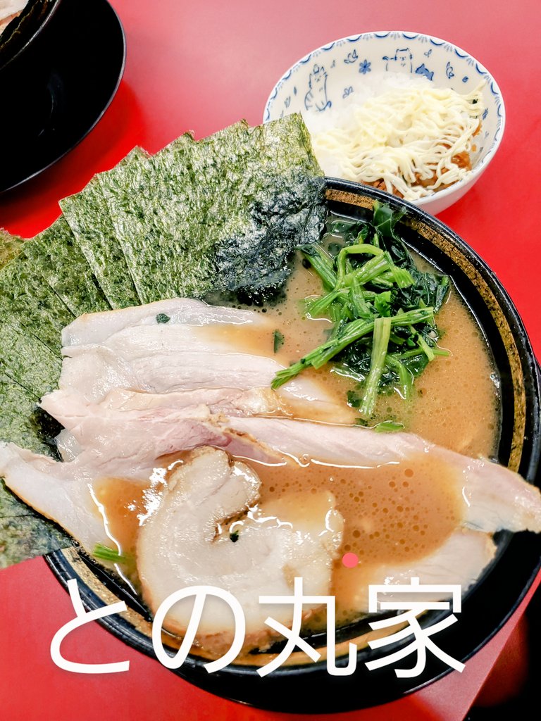 【王道家直伝 との丸家八潮店】 チャーシュー麺(3枚)+のり+半ライス (無限にんにく+無限しょうが+スープ浸しのり巻き) 初訪~🔰 スープは王道家より濃くなく此方の方が飲みやすい😌 麺は自家製でこしが半端ない😆 美味いっすね🤣 🍚無限にんにく+しょうが+マヨネーズからのり巻き喰い✨ おつですね💕