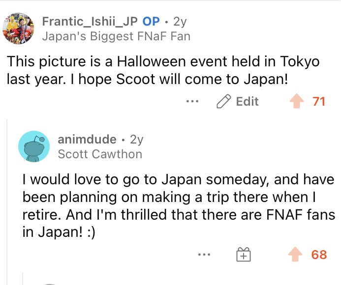 生放送中に大好きなゲームの製作者(Scott)が降臨しコメントしてくれて大パニックを起こして作者の額縁を持ちながら英語でまともに挨拶もできなくなっちゃうイシイ