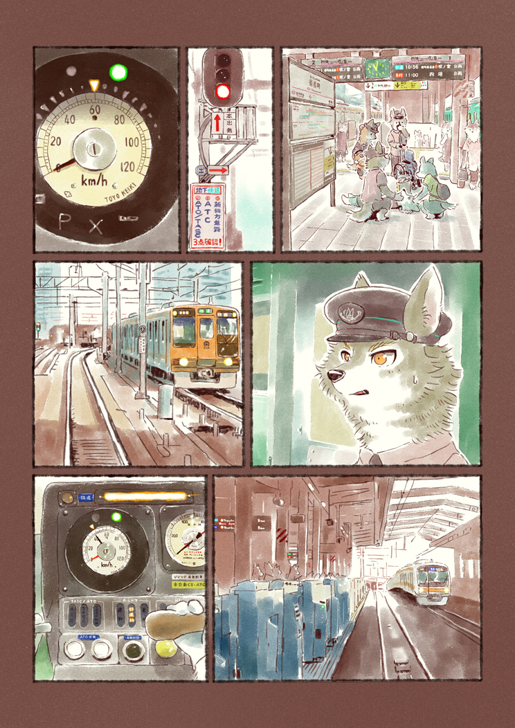 オオカミが電車を運転する準備をするマンガ