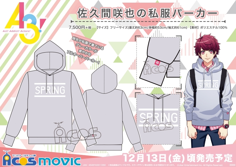 A3! 佐久間咲也の私服パーカー j-hobby.net/mate/376260.ht… 胸元には『SPRING』、袖口のピスネームには花モチーフのプリントがオン。
