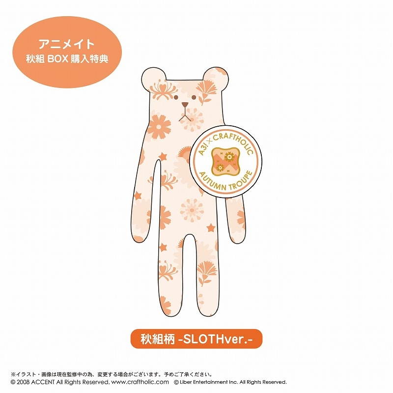 CRAFTHOLIC×A3! 缶バッジ付きぬいぐるみマスコット -秋組- j-hobby.net/mate/386842.ht… アニメイト特典:BOX購入特典:「秋組柄 -SLOTHver.-」