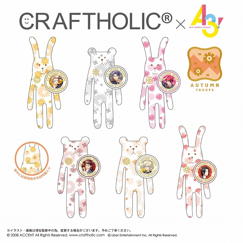 CRAFTHOLIC×A3! 缶バッジ付き ぬいぐるみマスコット j-hobby.net/ami/387207.html チームをイメージした限定デザインに、さわり心地の良いふわふわ生地を使用!