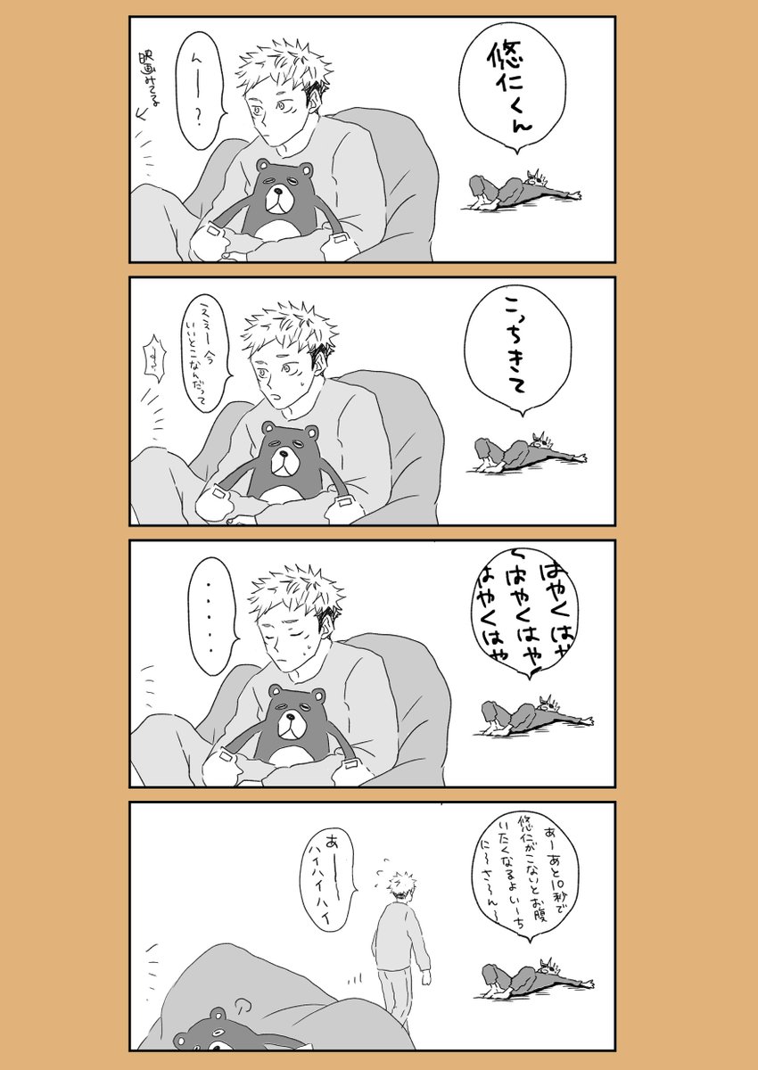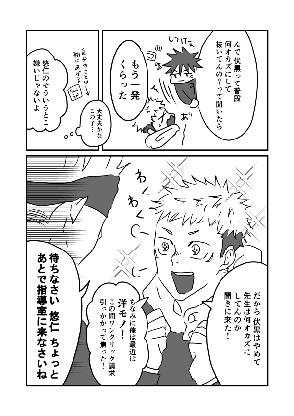 五悠 1/3 n番煎じなんだけども…たまに潰れて本音ぶちまけてくる🐯 5⃣に「はげろ!」って当たり散らす🐯を描きたかった。