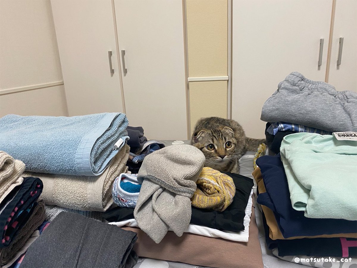 洗濯物に囲まれてしまった まつたけ