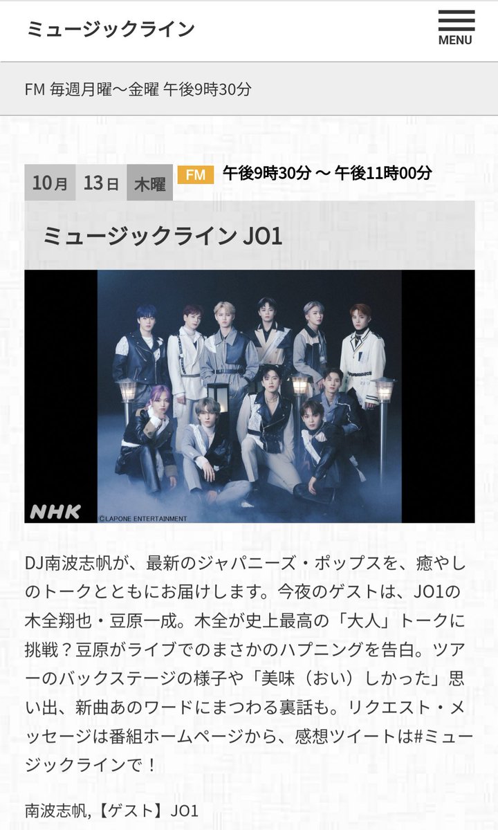 #JO1 📻出演お知らせ