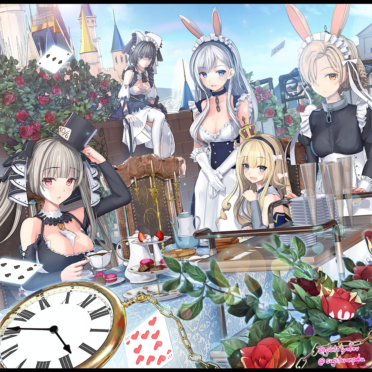 ロイヤルのみんなでお茶会☕ 🎩😸👑🐰🐰