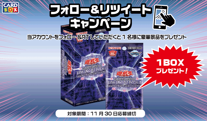 いただいた方の中から抽選で1名様に遊戯王の最新弾を