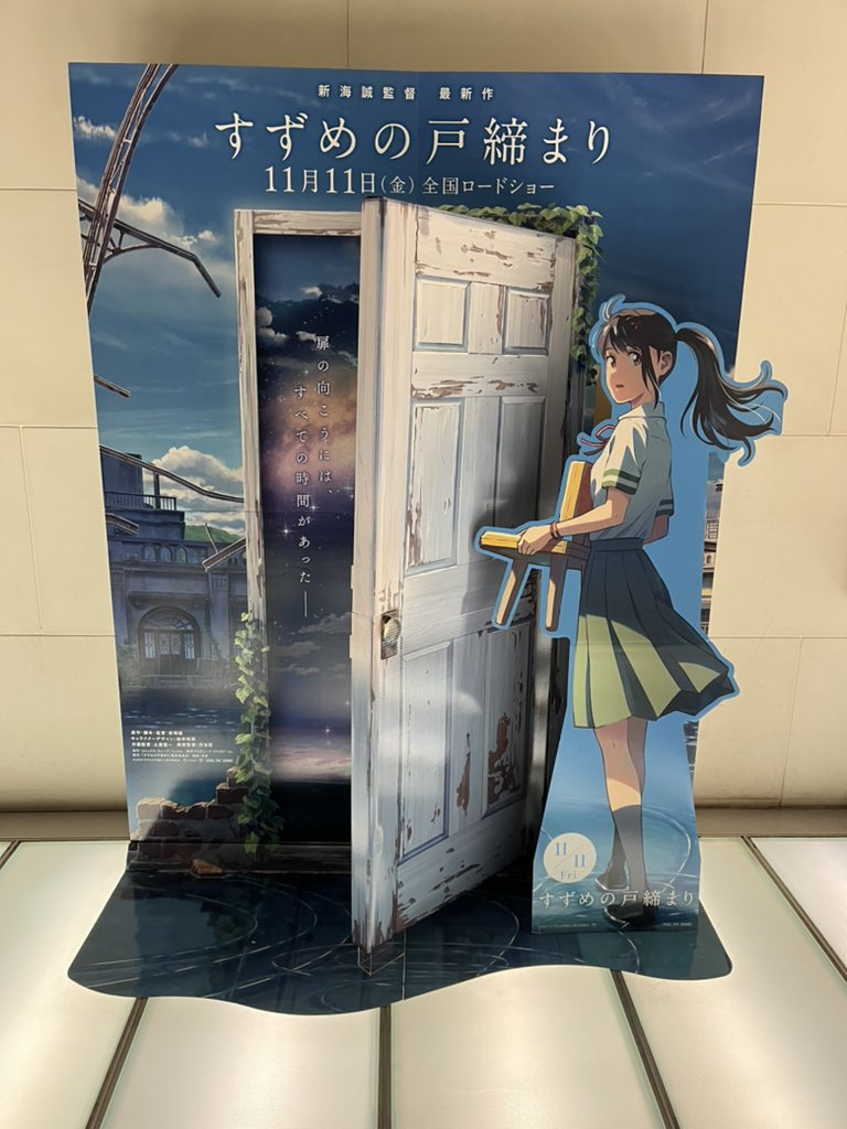 『すずめの戸締まり』拡大マスコミ試写に。感動で言葉を失う122分、途中何回か声が出そうにさえなった…詳細は後日記事で。原菜乃華さんの純で透き通る声、松村北斗さんの人とも神ともつかぬ最上の声、心がもっていかれました。早くもう一度観たいけど胸いっぱい。11.11公開 suzume-tojimari-movie.jp