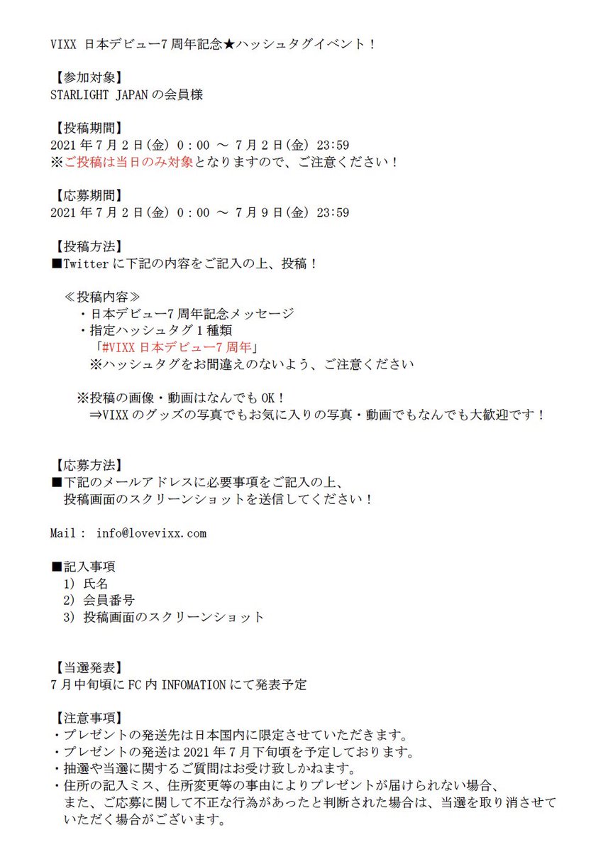 STARLIGHT JAPAN会員の皆様からVIXXに贈る愛のメッセージを募集します‼️