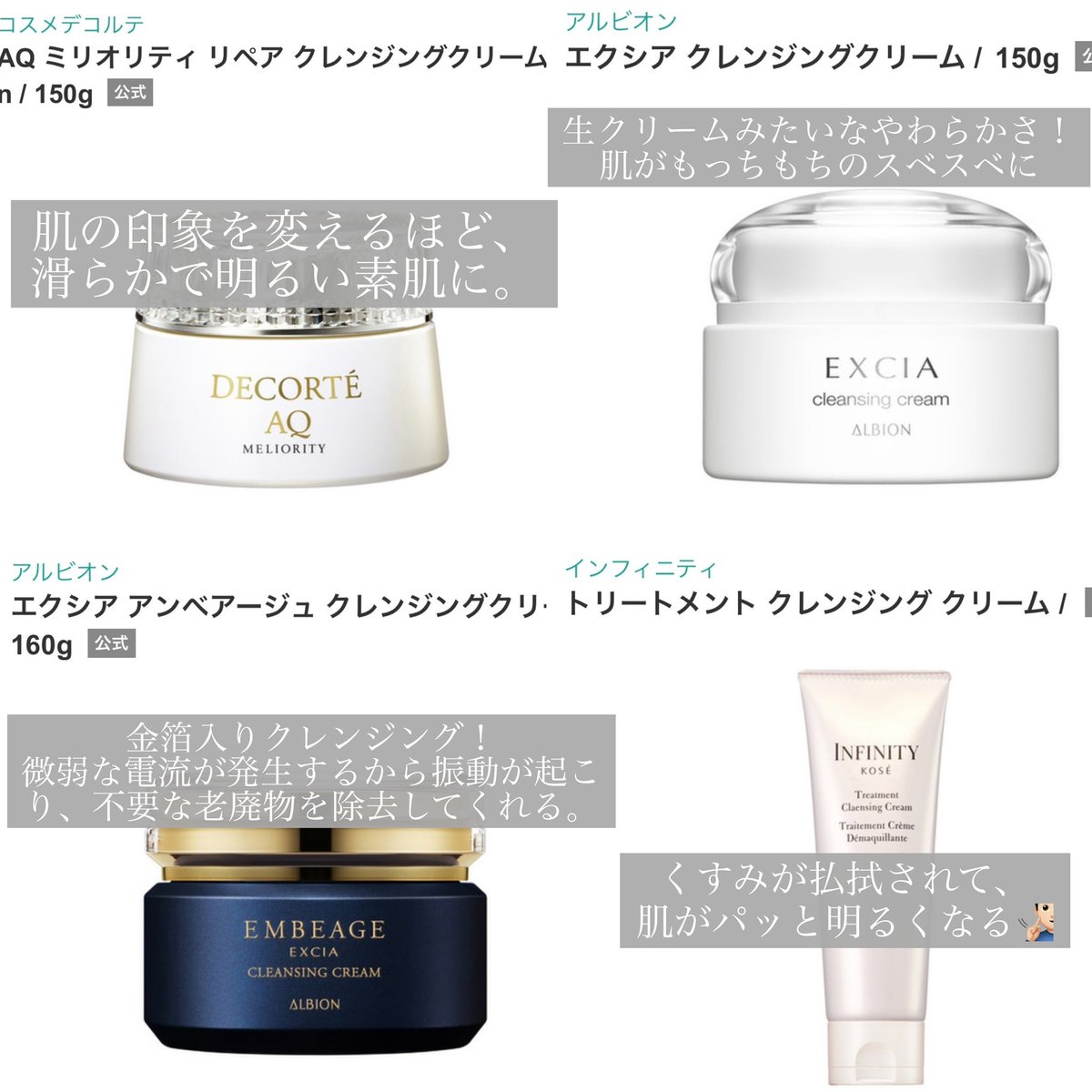 美肌作りの基本は"落とすケア"がほんっっっとうに大事なんだけど、今まで使ってきたクレンジングをまとめてみた👼💕 オイルで言ったらSK-IIとカネボウ、クリームでいったら断然アルビオンのエクシアがお勧め💁🏻‍♀️肌が変わるというのはこういうことだと思い知らせてくれる…🥺🫶