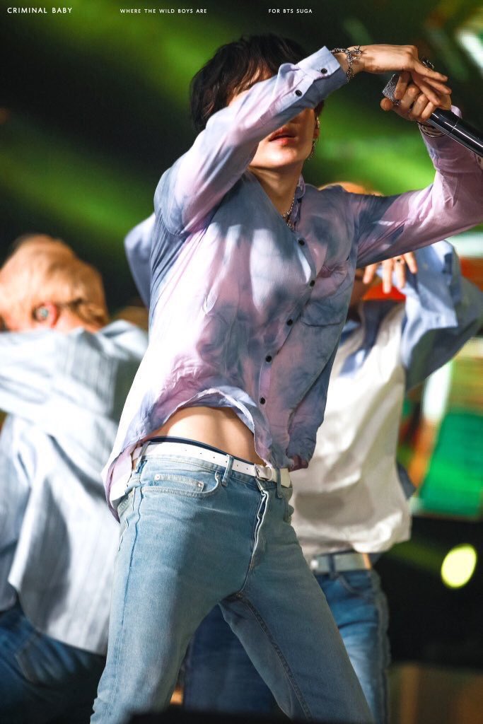 ダンスのせいではだけてしまった胸元を隠そうとすればお腹がチラ見えしてしまい、その腹チラも上手く隠せずに全アミを釘付けにしハラハラさせたこの日のユンギさん……、分かってやってたとしても普段完全防備だからこそクるんよな…………無事に有罪です。
