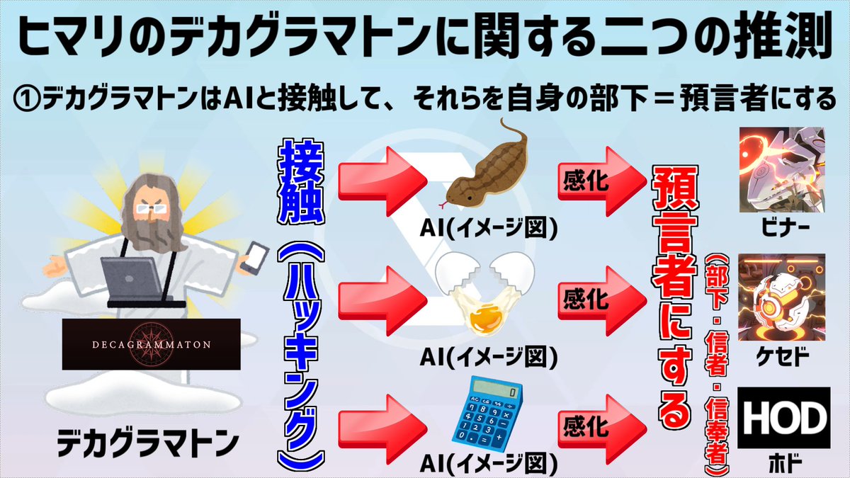 「特殊作戦デカグラマトン編」の内容からヒマリの推測や預言者についてまとめました。保存や掲載などご自由にお使いください。またYouTubeの動画にてこの内容を解説しているので、良ければチェックお願いします!→【youtu.be/uujr11YT0FQ】