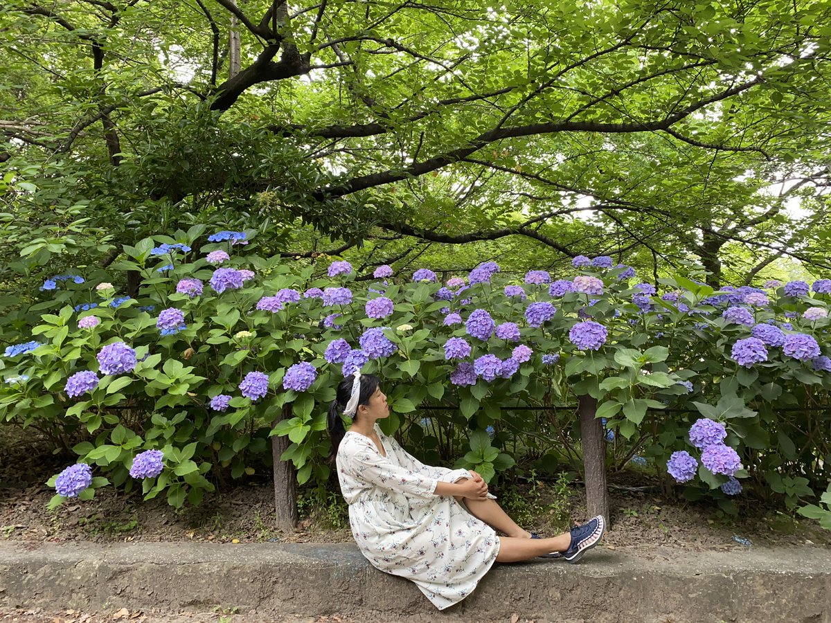 ทางเดินที่ล้อมรอบด้วยพุ่มดอกอจิไซ(ไฮเดรนเยีย) สถานที่จริงๆคือสวยมากกก